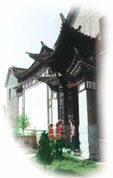 白族的住宅,因各地区的自然环境和技术水乎不同,创造出多种多样的房屋形式。高寒山区的白族人民多居住单间或两间相连的“垛木房”或“竹篱笆房”。坝区白族人民多住土木结构的瓦房。其布局则采取“三房一照壁”和“一正两耳”或“四合五天井”等形式,院落宽敞,阳光充足。多数人家还设有花坛,种植山茶、石榴、挂花、香橡等花木,花草芬劳四溢,环境优美舒适。白族人民十分重视照壁、门楼的建筑。照壁用白灰粉刷,由名人题写“万紫干红”、“旭日东异”或“福”、“寿”等象征吉祥如意的大宇。四周山墙也一样彩画着各种山水、花鸟、虫鱼图案,每个角落的装饰都很讲究,给人以生动活泼、均匀对称、和谐优美的感觉。面富于独特风格的门楼,其建筑装横更倾注了白族人民的艺术智慧。一般都是斗拱重叠,飞搪串角,附以泥塑、木雕、石刻、凸花青砖、大理石等组合的立体图案,。其造型之优美,结构之严谨,可与内地殿阁婉美。许多门扇是由钱空三层的花、鸟、虫、鱼、人物等以及浮雕图案所组成,显得玲现剔透、精巧优美。有的门楼、隔扇不用一颗铁钉,仅以凿出卯眼相接,却十分坚固牢实。所有这些,都充分体现了白族人民具有较高的建筑艺术水平。