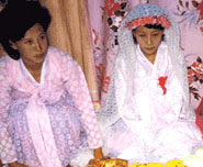 结婚仪式在新娘家举行。新郎一行人手捧用红包巾包着的木雕大雁来到新娘家后,新娘家用木盆把木雁接过去,然后把新郎让进客房--“舍廊房”,新郎在此戴上纱帽,系上冠带,新娘头上戴“簇头里”,手戴“汉衫”走进樵礼厅举行结婚仪式,结束后,新郎便开始“赏大桌”,即品尝佳肴,由新娘家的客人和自家的亲戚们陪同。行过樵礼仪式后,双方便正式结为夫妻。