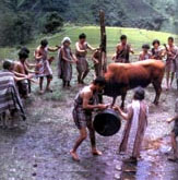 相信“万物有灵”,崇拜自然神,有少部分人信仰基督教。死后的当天,村里的人及远近亲戚都要送粮食、酒、鸡等以示哀悼,一般次日送葬,第三天便由死者家属领村人到自家仓库当场开仓煮酒,一起共享。届时,家属成员及亲友也送去礼物,村中老人也做些食品给死者家送去。