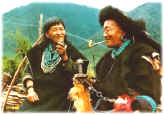 婚姻仪式 完婚的仪式是否隆重,视男方经济情况而定,一般要在婚前请巫师杀鸡问卜,选择好吉日良辰。结婚那天,全村老小和双方亲属前来男家贺喜,每个人都携带一定礼物(酒或肉)。婚礼由男方的父母或长辈主持。新郎新娘给客人敬玉米酒、青梨酒,然后吃肉。客人们在这里可以通宵达旦地饮酒唱歌,走时每人还可以把吃不完的东西带走一份。