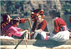 纳西族有一种古老的习俗,每年农历七月二十五日,人们来到风景秀丽的泸沽湖畔崇拜女神,青年男女借此机会寻找结交“阿注”。最为有趣的是,他们在温泉洗浴时,男女在众目睽睽之下同池沐浴,互相嬉戏。夜晚,各自选择喜爱的“阿注”就地偶居。待到第二天天刚亮,再返回自己的母系家中。