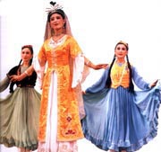 女人服饰 女人大多喜欢穿宽大的紧腿裤和长宽大的连衫带皱边的长裙,颜色多为白色、绛色或黄色;上装的袖口小,脚穿“喀以喀”。妇女们喜欢戴镶有珍珠的小花帽,有的还加一块大头巾。女性都戴各种饰品,如耳环、手镯、项链等;衣服领口上还饰有别针,显得雍容华贵。现在穿时装的人越来越多了。