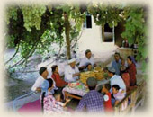维吾尔族待客和作客都有讲究。如果来客,要请客人坐在上席,摆上馕、各种糕点、冰糖等,夏天还要摆上一些瓜果,先给客人倒茶水或奶茶。男女青年结婚时,由阿訇或伊码目(均为宗教职业者)诵经,将两块干馕沾上盐水,让新郎、新娘当场吃下,表示从此就像馕和盐水一样,同甘共苦,白头到老……