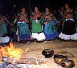 “火把节”是彝族地区最普遍而最隆重的传统节日,一般多在夏历六月二十四日或二十五日。有关这个古老节日的来源,不同地区有不同的传说,其中较普遍的一种传说是:古时天上肝个大力士斯热阿比,他听说人间有个大力士阿提拉八,就到人间与阿提拉八比赛摔跤。结果热阿比输了,回奏天神后,天神恼羞成怒,派遣害虫到人间糟蹋庄稼。阿提拉八在六月二十四日这一天,号召人们燃起松枝火把驱虫,结果驱走了害虫,战胜了天神。为了纪念战胜天神,从此每年到这一天都要举火把欢庆。每到火把节,彝族男女老少,身穿节日盛装,打牲畜祭献灵牌,尽情跳舞、唱歌、赛马、摔跤。夜晚,手持火把,转绕住宅和田间,然后相聚一起烧起篝火,翩翩起舞。
