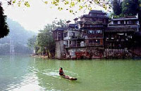 在凤凰的日子,我们还去参观了沈从文的故居、墓地,坐小船在明静的江中看人观景,在夜幕下的江边慢慢地摄取对面呆脚楼那若隐若现的令人心生恍晃的灯光和倒影……有人隆重地向我们介绍了“南长城”,我们没去——后来在我们去梵净山的路上,我们从车窗看到了它“雄伟的”身影,心中不禁庆幸没有浪费我们的时间和金钱。