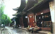 初入丽江我真有一种到了江南水乡的感觉,看着小桥、流水,以及沿河的房屋挂出的串串红灯笼,老想着或许还有穿着精美旗袍、抱着琵琶、表演着苏州评弹的水乡姑娘。可是,当满街容中尔甲的藏族民歌和彝族的著名乐曲此起彼伏穿粱饶栋,我竟一时分不清自己身在何处。